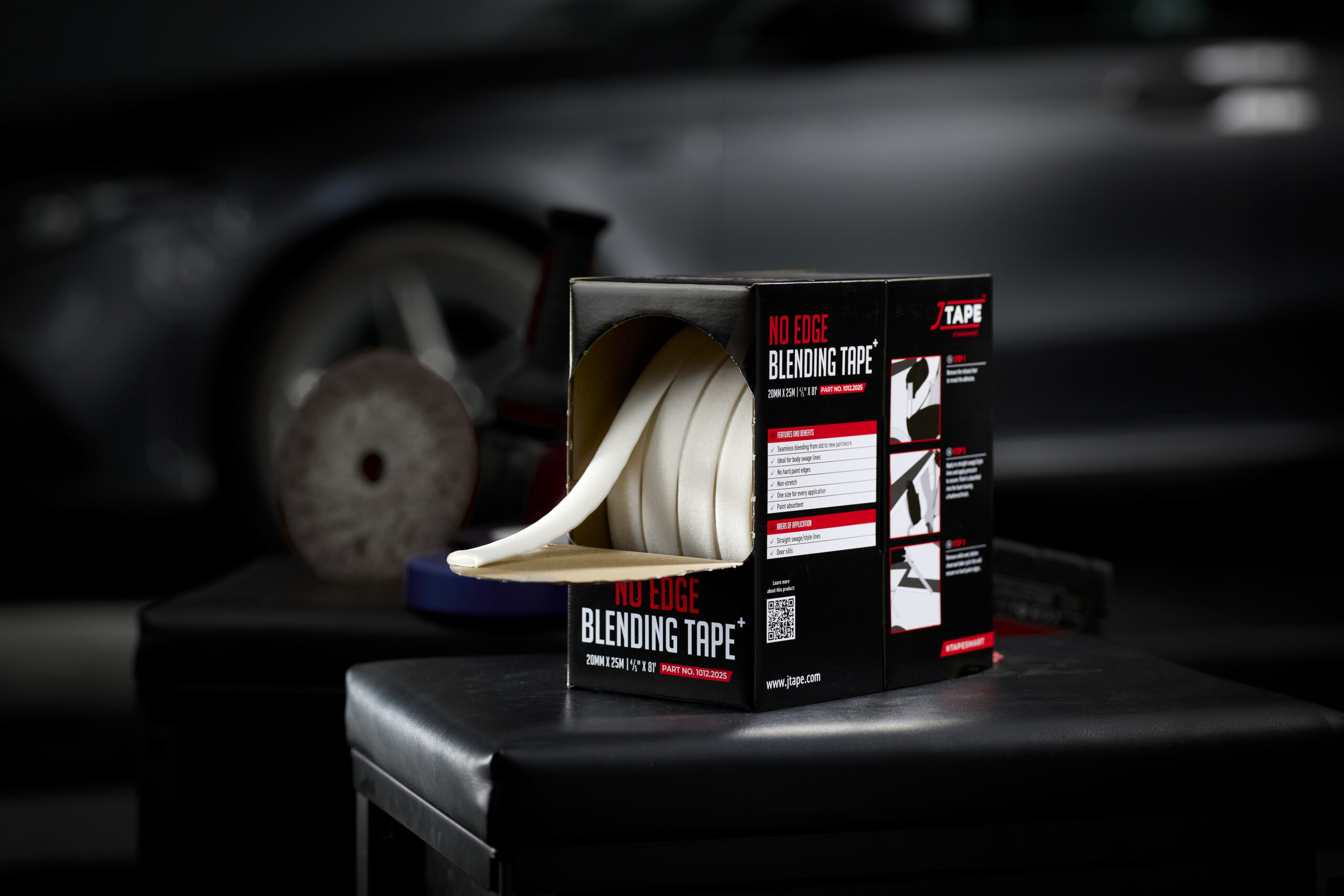 JTAPE No Edge Blending Tape can be applied quickly and accurately for straight edges, giving a feathered finish without the need for reworking; removing the foam tape while the clear coat is still wet gives the perfect finish.